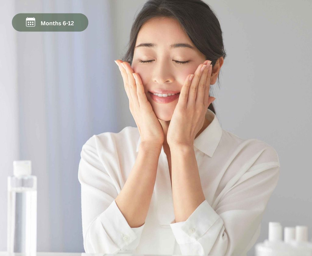 Stable, long-term calm, balanced skin. Even tone, refined texture, healthy glow. For melasma and rosacea, ongoing protection remains essential to prevent relapse. Annual review ensures continued stability and treatment fine-tuning.